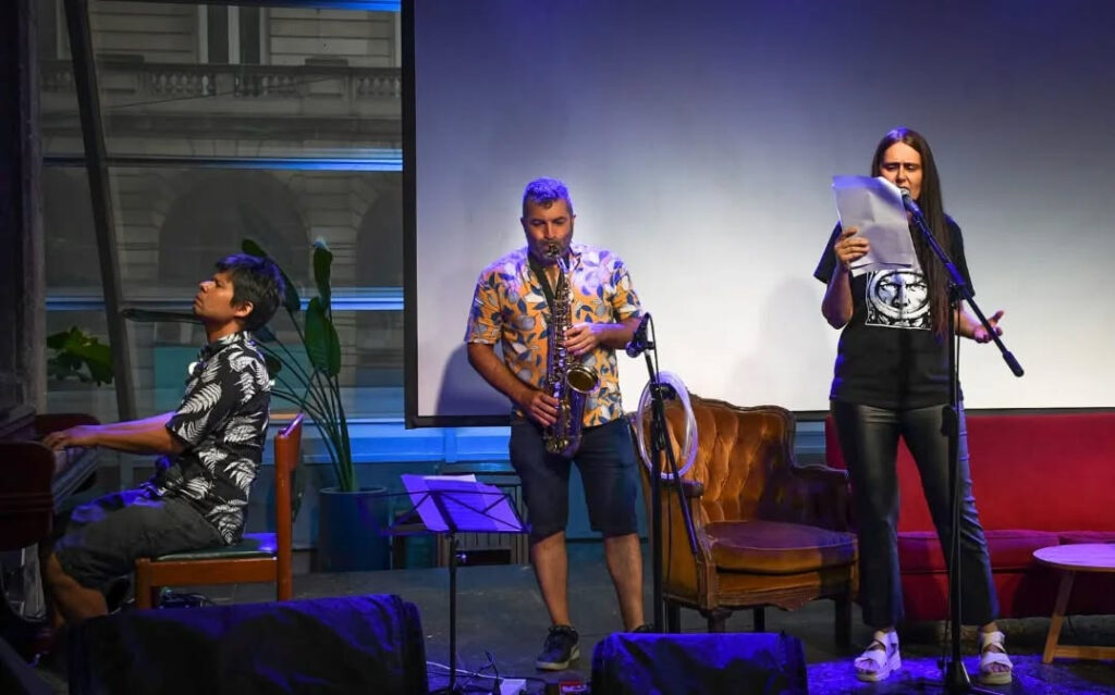 Y el tercer proyecto es Puentes, un dúo con Leo Cullari, que toca saxo, flautas y sintetizadores. En este caso combinamos jazz con música contemporánea, y hay algo particular que es que trabajamos mucho con otras disciplinas artísticas: invitamos escritores, bailarinas, artistas audiovisuales.